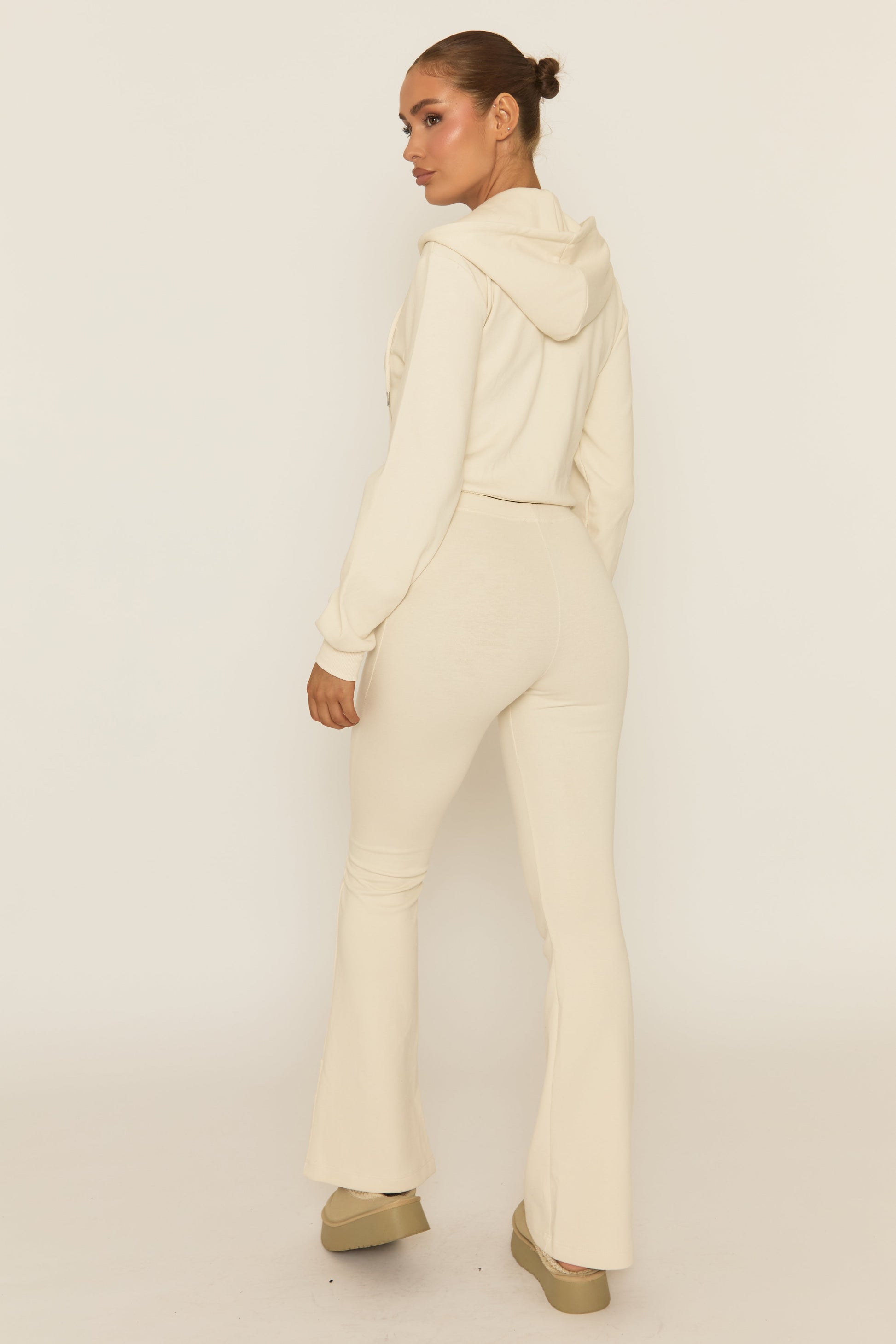 Cream Skinny Flare and Zip Through Hoody Lounge Set