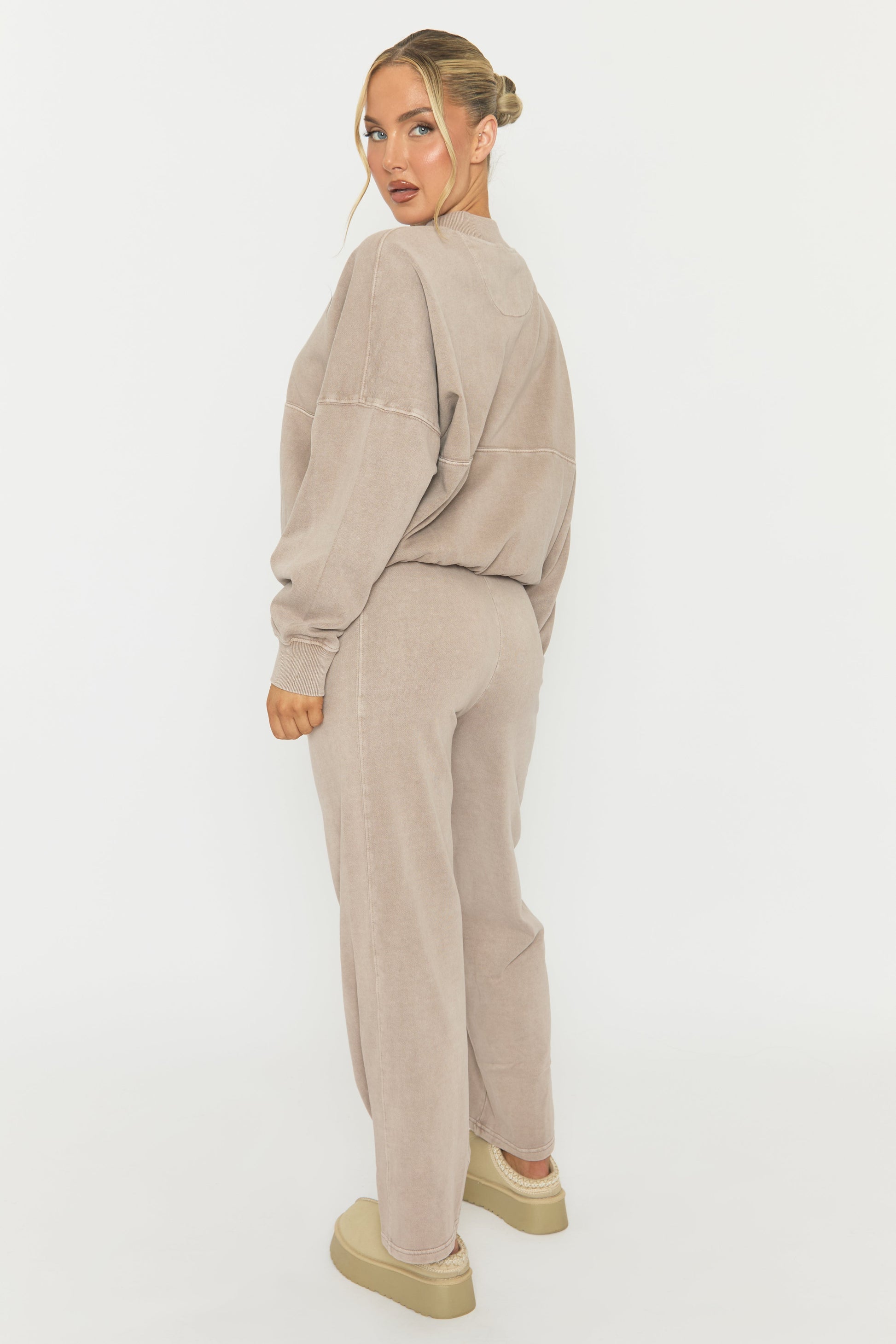Dove Grey Acid Wash Bomber and Wide Leg Jogger Loungewear Set
